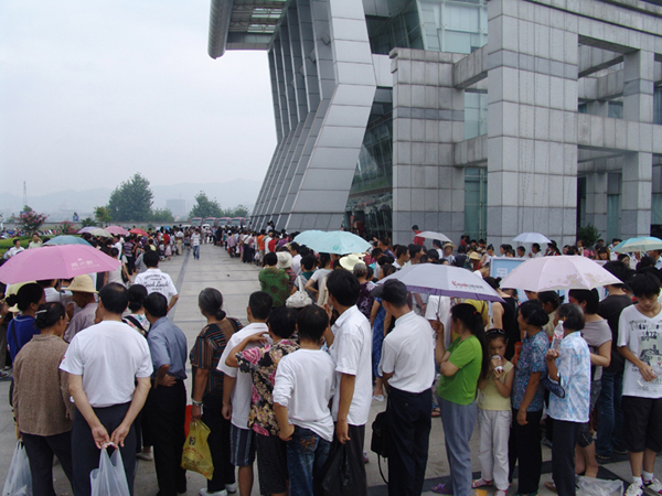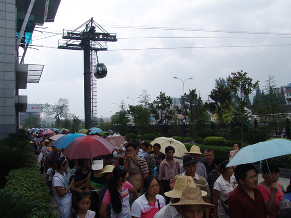 因為有著越早越虔誠的說法,從凌晨5點開始,就有人陸續(xù)在索道下站排隊等候,凌晨6點,等候排隊的本地居民已達到了1000余人。天門山公司根據(jù)以往的經(jīng)驗,已提前一周從各個細節(jié)上做好了預案,包括:在硬件設施上,提前對索道進行全面檢查,并在這一天將96個索道轎廂全部啟動,并將索道以6米\秒的速度全速運行,以在最短的時間運送最多的游人;在市場宣傳上,提前向所有的旅行社發(fā)送短信和傳真,讓大型團隊盡量避開這一天,避免擁擠;在本地居民跟游客的關系處理上,分開不同的售票點及侯票處,以防不必要的沖突;在軟件服務上,執(zhí)行全體員工凌晨6點統(tǒng)一上崗,公司相關領導及一些特殊的崗位甚至凌晨4、5點就已上崗,所有的準備只為給游人提供最好的服務。
