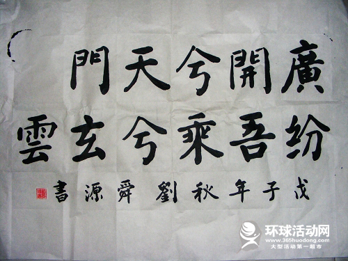 根據(jù)安排,劉舜源將于9月5日在天門(mén)山天門(mén)洞書(shū)寫(xiě)我國(guó)偉大愛(ài)國(guó)詩(shī)人屈原贊美張家界的詩(shī)句——“廣開(kāi)兮天門(mén),紛吾乘兮玄云”,屆時(shí)三十名太極拳愛(ài)好者將在劉舜源身后舞動(dòng)太極。而劉舜源現(xiàn)場(chǎng)創(chuàng)作的這幅八米長(zhǎng)、四尺寬的書(shū)法作品,則制作成巨大拼板,在9月12日中國(guó)湖南國(guó)際旅游節(jié)開(kāi)幕式上由千人托舉向海內(nèi)外嘉賓展示。據(jù)本屆旅游節(jié)總導(dǎo)演陳偉康介紹,天門(mén)山自然景觀雄渾、文化底蘊(yùn)深厚,之所以選定少兒在天門(mén)揮毫,有利于把中華民族優(yōu)秀的歷史文化在孩子的啟蒙教育階段培養(yǎng)起來(lái),同時(shí)也增加本次湖南旅游節(jié)的亮點(diǎn)和看點(diǎn)。