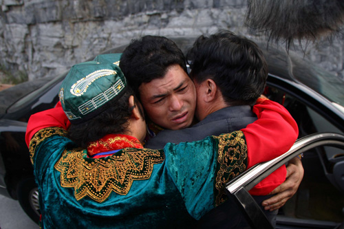 被營救出來的賽買提與家人抱頭痛哭,一直說對不起