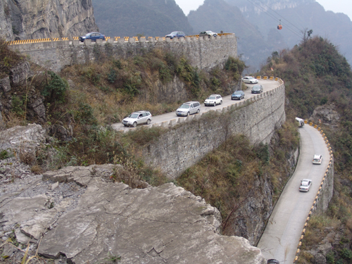 12月6日,來(lái)自長(zhǎng)沙金鷹955自駕會(huì)所的50臺(tái)自駕車齊聚天門山天路,舉辦“挑戰(zhàn)通天大道,體驗(yàn)心跳之旅”的自駕活動(dòng)。這是通天大道在2008年度迎來(lái)的第六次大型自駕活動(dòng)。