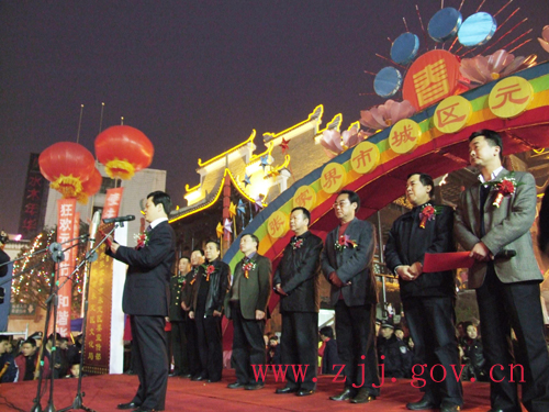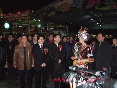 2月3日是農(nóng)歷正月初九,晚上18:30分,2009年張家界市城區(qū)“狂歡張家界”大型春節(jié)群眾民族文化活動(dòng)盛大燈展開幕式在大庸府城隆重舉行。市委書記胡伯俊,市政協(xié)主席周元庭,市委常委、政法委書記陳美林,市委常委、宣傳部長(zhǎng)肖凌之以及永定區(qū)委、區(qū)政府領(lǐng)導(dǎo)等出席開幕儀式。胡伯俊為2009年張家界市城區(qū)“狂歡張家界”大型春節(jié)群眾民族文化活動(dòng)盛大燈展活動(dòng)開啟啟動(dòng)按鈕,2009年張家界市城區(qū)“狂歡張家界”大型春節(jié)群眾民族文化活動(dòng)正式啟動(dòng)。
