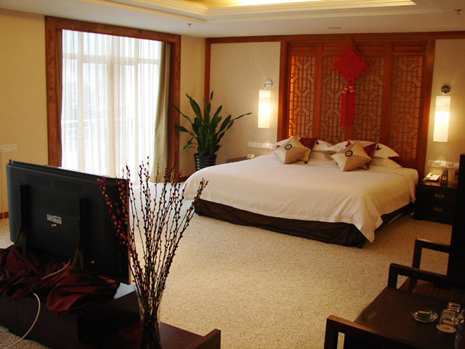 張家界五星級酒店-武陵源國際度假酒店是由張家界泰和投資有限公司投資3億余元興建,集湖湘文化、湘西部旅游文化、土家族民俗民風(fēng)演繹于一體的五星級國際綜合性度假旅游飯店。酒店總占地面積3.7萬平方米,其中建筑用地面積1.1萬平方米,酒店總建筑面積4.2萬平方米。酒店于2007年03月08日開業(yè),功能設(shè)置有豪華山景客房、豪華園景客房、行政樓層、特色套房、豪華總統(tǒng)套房等各類客房總計455間(套).多個特色中西餐廳,其中豪華大氣的泰和盛世中餐廳面積680平方米,可同時容納500人用餐;豪華宴會廳可容納700人的會議或用餐;另設(shè)有11間貴賓廂房、咖啡廳、大堂吧、茶室、池畔吧、行政酒廊?刁w娛樂休閑商務(wù)設(shè)施齊全,商務(wù)中心、桑拿、健身室、游泳池、健康水會、KTV包房、美容美發(fā)室、網(wǎng)球場、臺球室、乒乓球室、商店、紀(jì)念品商店等各種服務(wù)項目一應(yīng)俱全。設(shè)有可停180多輛汽車停車場,配備了中央空調(diào)、獨立計算機(jī)網(wǎng)絡(luò)、背景音樂、程控電話、閉路電視監(jiān)控、緊急呼救、防火安全等先進(jìn)設(shè)備系統(tǒng),可為中外賓客提供至情至真至美的服務(wù)。
