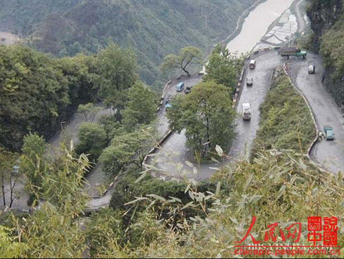 由于這是湖南西部連接重慶的國道,盡管道路是盤旋在懸崖絕壁而上,但車流量很大,路面損壞、堵車經(jīng)常發(fā)生。大型車輛,司機(jī)沒膽量和沒過硬的技術(shù)是不敢走這一路段的。
