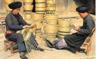 武陵源的苗嶺,以生產(chǎn)楠竹篾器著名。苗嶺竹器的傳統(tǒng)工藝歷史悠久,以用蔑細(xì)勻,式樣美觀而聞名。經(jīng)常上市的有苗嶺竹籠、竹籃、竹椅、背簍和其它竹編裝飾品。這些蔑器常用楠竹作主件,紫竹鑲邊,編制出各種花紋,或用竹蔑的天色采彩裝飾出精美的圖案。來(lái)武陵源旅游的人,常常選購(gòu)一兩件苗嶺竹器留作紀(jì)念。 |
