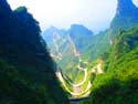 天門山,距市區(qū)僅8公里,海拔1518.6米,是張家界的文化圣地,被尊為“張家界之魂”,有湘西第一神山的美譽(yù)。山體孤峰高聳、氣勢(shì)臨空獨(dú)尊,世界最高海拔的天然穿山溶洞——天門洞,懸于千尋素壁之上,成為奇絕天下的勝景,也成就了當(dāng)?shù)厣詈、大氣的“天文化”和“仙山文化”。占地萬(wàn)余平方米的天門山寺,自明朝以來(lái)香火鼎盛,是湘西的佛教中心。“天門洞開、鬼谷顯影、獨(dú)角瑞獸”等六個(gè)千百年來(lái)的難解之謎,渲染著撲朔迷離、神秘出塵的氣氛。 天門山還是張家界的第二個(gè)國(guó)家森林公園,擁有世界罕見的高山珙桐群落,山中四季野趣盎然,春有竹櫸斗翠,夏擁飛瀑疊云,秋至層林盡染,冬來(lái)迭嶂團(tuán)雪,變幻多姿,深遠(yuǎn)有致,宛如一座美不勝收的神仙花園。天門山是集神奇獨(dú)特的地質(zhì)外貌、歷史悠久的宗教文化、異彩紛呈的人文勝跡、豐富寶貴的自然資源于一體的旅游度假勝地。飛跨7.2公里的客運(yùn)索道,以世界第一的長(zhǎng)度,令游客從城市花園直達(dá)原始空中花園,擺脫都市喧囂浮躁,感受天人合一的明澈寫意,從而擁有終身難忘的旅游體驗(yàn)。