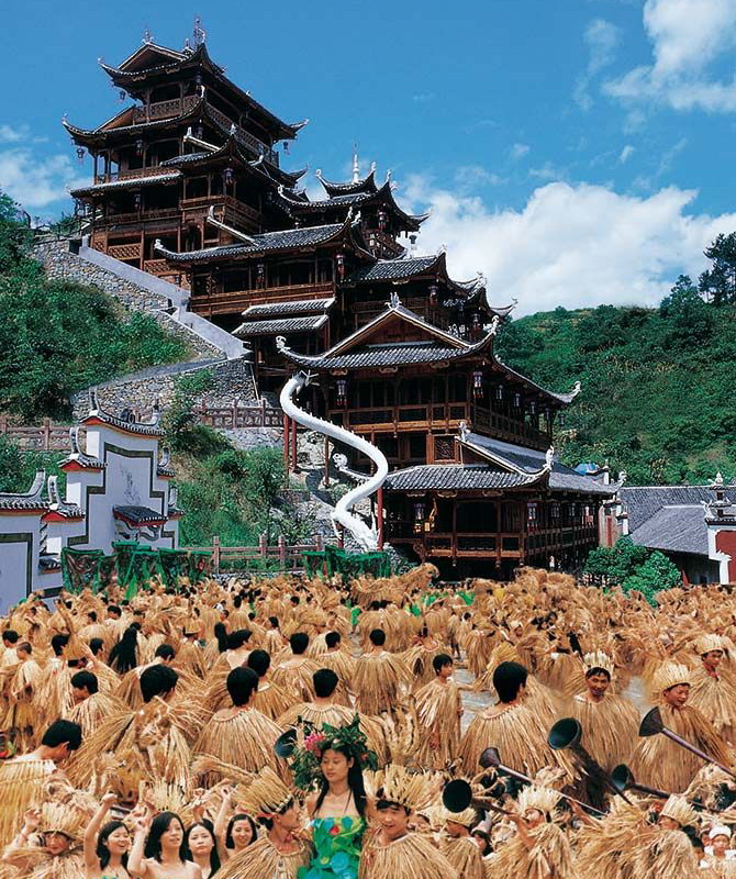 張家界土司城,南倚天門,北靠澧水,永定第末代土司覃純一被朝廷封為世襲千總后建造,距今近三百年歷史,是西南地區(qū)唯一保存完好的古城。土司城占地120多畝,集吊腳樓群,走馬轉(zhuǎn)角樓群為一體,是土家族古代文明的發(fā)祥地和凝聚地。城內(nèi)遺存著大量的珍貴文物,素有“南方紫禁城”之稱。2002年建筑奇觀“九重天吊腳樓”和“千人茅古斯”一并載入世界吉尼斯紀錄。2003年被列入了國家AAAA級景區(qū)、張家界旅游精品線路。是來張家界考察的國家領(lǐng)導(dǎo)人和藝術(shù)界人士的必到之處。很多專家學(xué)者參觀土司城后紛紛感慨“不到土司城、不懂土家人”。