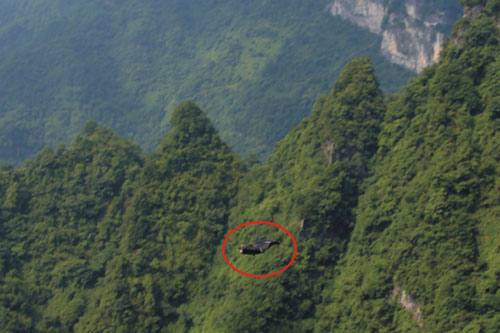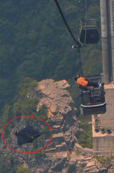 張家界天門山驚現(xiàn)"變形金剛3"翼裝飛俠