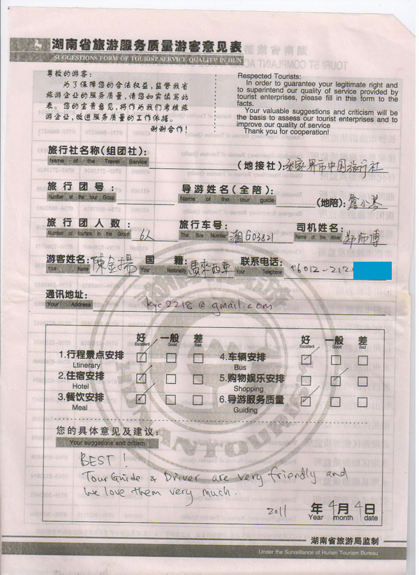 馬來西亞陳先生一行6人旅游質(zhì)量回饋