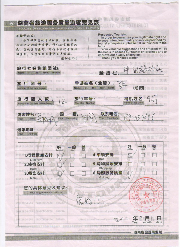 北京鄭先生一行12人旅游質(zhì)量回饋