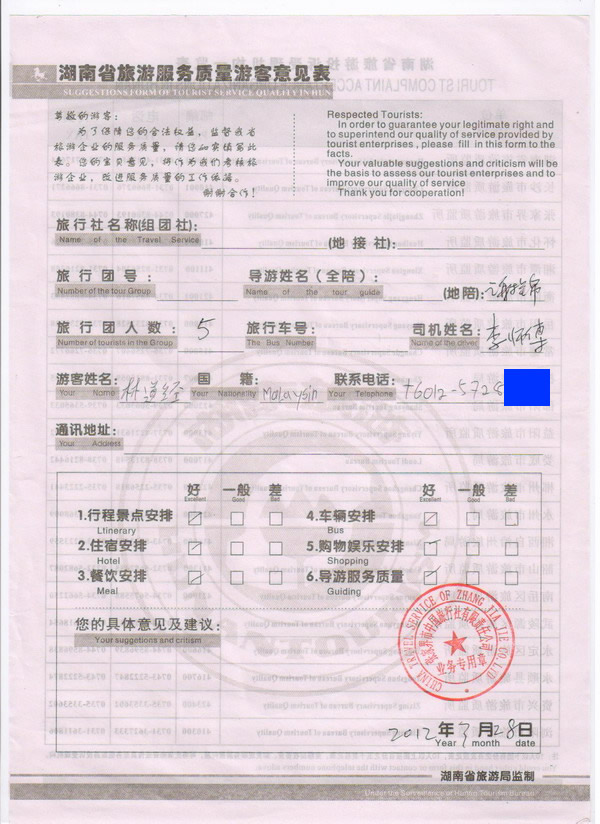 馬來西亞林先生一行5人旅游質(zhì)量回饋