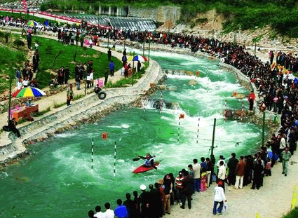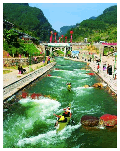 冠軍搖籃一參觀奧運比賽場地2002年,激流回旋的創(chuàng)始人,國際激流、漂流協(xié)會主席西班牙拉蒙博士來到這里,優(yōu)質(zhì)的水源、良好的氣候、適宜的水溫、十分安全,令他興奮不已,這位西班牙人抑制不住沖動,親手按國際標準,設(shè)計了張家界激流回旋。建成后成為“世界一流、亞洲最佳”的世界比賽場地。2003年,這里成功舉辦了“五城會”和全國激流回旋比賽,繼而成為2008年北京奧運健兒指定比賽基地,今年8月,這里又將成為亞洲錦標賽的舉辦地。2004年,張家界激流回旋正式對外開放,陳至立等黨和國家領(lǐng)導人來此觀察,國家體育總局局長袁偉民參觀后稱贊道:“奧運健兒搖籃,時尚漂流勝地。