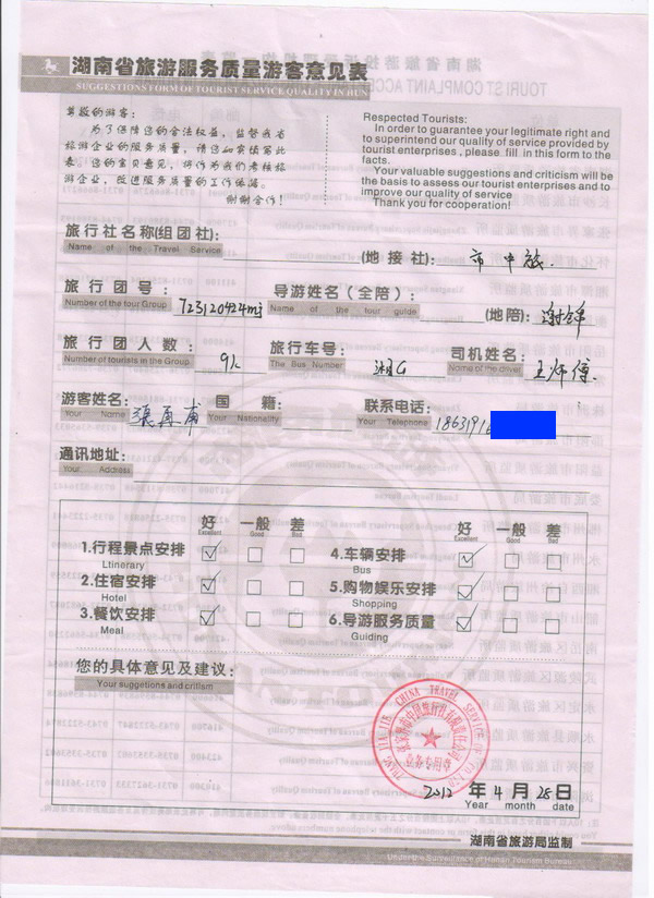 山西張先生一行9人旅游質(zhì)量回饋