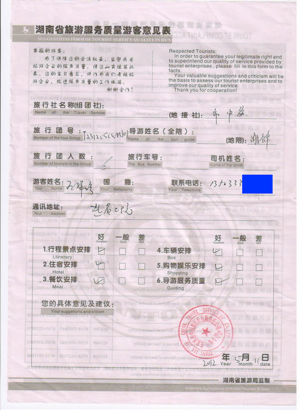 山東孔女士一行6人旅游質(zhì)量回饋