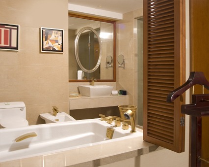 大使套房:面積153平方米,由一個(gè)客廳、一書房和兩個(gè)臥室組成,所有房間都可看到百丈峽風(fēng)光。