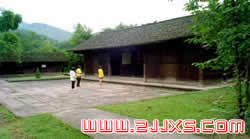 [賀龍故居]這是一棟坐北朝南、四扇三間的普通木房,原是賀龍祖父賀良仕于清道光年間修建的,后為賀龍的父親賀仕道所繼承。賀龍和他的姐姐、妹妹、弟弟都出生在這里,并在這里度過了他們的童年和青少年 時期。由于他們家人口多,賀龍父親將這三間房用木板隔成六間。正中一間為堂屋,門首紅底金字匾額上的“賀龍故居”四個字為鄧小平手書。堂屋前間過去是供奉家神和紅白喜事用的廳堂,現(xiàn)在這里置放賀龍元帥身穿戎裝的半身銅像。堂屋后面是退房,是賀龍姐姐和妹妹的臥室。左前間為火炕屋,冬天,全家人就在這間屋里生火取暖,來人來客,也都招呼在這里就坐。1916春,賀龍聯(lián)絡(luò)20個人就在這火坑屋里商量過襲擊芭茅溪鹽稅局的事。后面半間是賀龍父母的臥室。當(dāng)?shù)赜袀習(xí)俗,認(rèn)為堂屋是左邊為大(也叫東頭,但它不是表示方位的),應(yīng)住長輩?腿藖砹,為表示尊敬,也請在這里就坐。堂屋右邊前間是廚房,后面是賀龍和他弟弟賀文掌的臥室。凡臥室都陳列有木床、被褥、蚊帳、木箱、書桌、靠椅、燈盞架和女人做鞋用的竹籃、洗衣棒等各種常用器物。故居右邊這棟房是騾馬房,賀龍十多歲時為了謀生曾當(dāng)過騾馬客,在這里關(guān)養(yǎng)騾馬。這是賀龍當(dāng)年用過的馬鞍、馬鞭和斗笠。 1919年,由賀龍祖父修建的這棟普通民房被反動“神后”燒毀,不久由賀龍父親重修,到1925年又被當(dāng)?shù)胤磩訄F(tuán)防陳策勛拆毀,只剩下槽門和一壁殘墻。文化革命時期賀龍遭到誣害被打倒,剩下的殘墻也被搗毀,屋基被平整為稻田,F(xiàn)在的賀龍故居是1977年省縣兩級政府撥款,按舊居原貌修復(fù)的。1983年,湖南省人民政府將賀龍故居列入重點文物保護(hù)單位。 賀龍一家為革命犧牲了五位親人,在故居陳列的烈士有賀龍的父親賀仕道、弟弟賀文掌、姐姐賀英、賀戊妹和妹妹賀滿姑。 賀龍父親賀仕道為人正直,嫉惡如仇,是最受當(dāng)?shù)厝俗鹬氐拈L者。他經(jīng)常教育子女,鼓勵他們不畏強(qiáng)暴,主持正義的有志之士。他認(rèn)定賀龍的所作所為是為勞苦大眾的,主動為兒子四處奔波,操心操勞。1920年,他為賀龍擴(kuò)充軍備遭當(dāng)?shù)胤磩觿萘屯练艘u擊而犧牲。賀龍15歲的弟弟賀文掌隨父同行,也被敵人捉住,用蒸籠活活蒸死。賀龍的姐姐賀英是一個有勇有謀的巾幗英雄。當(dāng)過湘鄂邊游擊司令,她率領(lǐng)游擊隊配合工農(nóng)紅軍為創(chuàng)建湘鄂邊、湘鄂西根據(jù)地作出了極大的貢獻(xiàn)。1933年夏,賀英駐洞長灣遭敵偷襲,在掩護(hù)傷病員撤退時不幸中彈,壯烈犧牲。賀龍的二姐賀戊妹也是在這次戰(zhàn)斗中英勇獻(xiàn)身。賀滿姑是賀龍的妹妹,比賀龍小兩歲,從小養(yǎng)成了勤勞勇敢,不畏強(qiáng)暴的性格。她參加賀龍和賀英領(lǐng)導(dǎo)的隊伍,并組織窮人打土豪,燒田契等革命活動,后來回到洪家關(guān)擔(dān)任了游擊隊長,1928年被桑植反動勢力殺害。賀龍一家,堪稱滿門忠烈、名垂青史的革命家族。