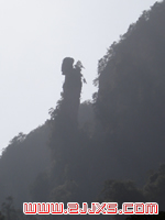 采藥老人是十里畫廊的絕景:一根獨(dú)立的石柱,很像一位老人,他彎著腰,頭上衷著一根頭巾,背上背著一個(gè)背簍,背簍里裝滿了各種各樣的中藥材。他滿臉皺紋,深邃的目光凝視著前方,神情好像有點(diǎn)優(yōu)慮。如果不是在有意識(shí)地觀賞,而是猛地一抬頭望見他,還真以為他就是某個(gè)山村里的土家族老人。