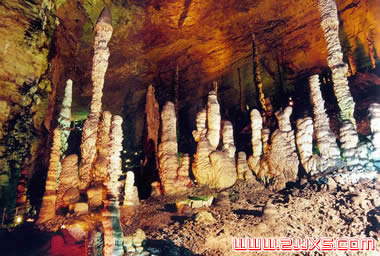 黃龍洞屬典型的喀斯特巖溶地貌,現(xiàn)已探明總面積48公頃,全長15公里,垂直高度140米,內(nèi)分二層旱洞,二層水洞。黃龍洞洞中有洞,洞中有河,由石灰質(zhì)溶液凝結(jié)而成的石鐘乳、石筍、石花、石幔、石枝、石管、石珍珠、石珊瑚等洞穴景觀遍布其中,無所不奇,無奇不有,仿佛一座神奇的地下“魔宮”。