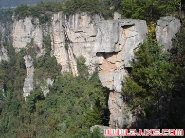 看罷絕景“仙女獻(xiàn)花”,前行數(shù)十步,回眺右側(cè)曠谷,但見數(shù)十奇峰林立。中有一峰似駿馬昂首振鬃長嘶,側(cè)有一石似武士牽韁繩馴馬。相傳這是向王天子的坐騎與衛(wèi)兵。山谷四周有不少神態(tài)各異的“武士”正在看熱鬧哩。松濤陣陣似馬嘶人吼。