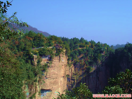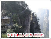 迷魂臺(tái)分兩級(jí), 第一級(jí)比第二級(jí)高2 米, 面積約100 平方米。 第二級(jí)懸空橫伸, 可坐十幾個(gè)人。 在這里眺望, 高低錯(cuò)落的石峰若斷若連;團(tuán)團(tuán)薄霧飄渺如煙, 群峰時(shí)隱時(shí)現(xiàn),令人難辨天上人間。迷魂臺(tái)是取這里風(fēng)光奇絕,令人意亂神迷馳魂奪魄之意。站在石臺(tái)上遠(yuǎn)望,黃石寨和腰子寨連成了一幅半弧形的山水畫(huà);金鞭溪和畬刀溝若隱若現(xiàn);腳下山谷中,成團(tuán)成簇的巖峰間,云繚霧繞,有時(shí) 彌漫成壯闊的江流,現(xiàn)出江上數(shù)峰青的奇異圖畫(huà)。 這時(shí),就自然而然想起古人的句子:日暮鄉(xiāng)關(guān)何處是?煙波江上使人愁。愁的是魂靈迷失在這片奇山異水之間,找不到歸途了。