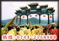 這是土家族古老的祭祀舞蹈。相傳八寶為古代土家先祖八個部落的首領(lǐng),人稱“八部大王”、“八部大神”,后來,八位首領(lǐng)先后戰(zhàn)死。后人為紀(jì)念他們,便精心制作了八個銅鈴,并按八部王在位時穿的八幅羅裙,騎著象征祖先騎過的寶馬,手搖銅鈴,翩翩起舞,高唱祭祖求福的古歌,以示懷念。因為八個銅鈴代表八個首領(lǐng),就把這種舞蹈取名為“八寶銅鈴舞”。 |