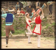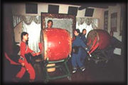仗鼓舞是張家界市桑植縣白族獨(dú)有的一種民族舞蹈。仗鼓舞以“仗鼓”作道具,與朝鮮族鼓舞有異 曲同工之妙。鼓長1.2米,兩頭大如碗口,用皮革繃面,中細(xì)可握, 形如木杵。相傳南宋末天寶年間,有谷、王、鐘三姓兄弟在蒙將兀良“寸白軍”服役,后“寸白軍”被遣散,三人從云南大理流落到桑植縣定居。某年臘月,白族兄弟們正在打糍粑準(zhǔn)備過年,一幫官軍突然圍寨抓人,白族人即用粑粑杵奮起反擊,將官軍打敗,白族人為慶賀這一仗的勝利,就以木杵作道具跳舞作樂,這便是仗鼓舞的由來。后來,白族人將粑粑杵改成鼓,配以笛子、嗩吶、大號(hào)和鑼鼓、鈸、磬等鳴樂伴奏,同時(shí)創(chuàng)造了八十一套舞蹈動(dòng)作,成為一種獨(dú)具風(fēng)格的民間舞蹈。 |