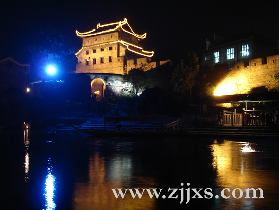 眼前這街巷、這跳巖、這沱江水、這吊腳樓、這萬(wàn)名塔,這城墻城樓、這愜意游人,都已不是現(xiàn)實(shí)世界中的實(shí)物,而仿佛是時(shí)空隧道另一端各不相干而又渾若一體的精靈,在漫無(wú)涯際的,由各自感受構(gòu)成的博大精神天地里自由懸浮。這個(gè)時(shí)候、這種境界,不必說(shuō)河燈隨波逐流的星星點(diǎn)點(diǎn),不必說(shuō)打更人聲聲鑼聲與叫喊聲,單是放任思緒在寧?kù)o、閉適、空靈的樂(lè)園中馳騁,也再不會(huì)有已隔了多少重時(shí)空的愛(ài)恨纏綿和心力交瘁。