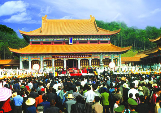 炎帝陵 :地處炎陵縣鹿原鎮(zhèn)鹿原陂,是中華民族偉大的人文始祖之一,炎帝神農(nóng)氏的安寢之地。陵殿金瓦紅墻,莊嚴(yán)肅穆,壯麗堂皇,成為炎黃子孫尋根謁祖之圣地。景區(qū)有神農(nóng)大殿、詠豐臺(tái)、圣火臺(tái)、天使館、御碑園等許多建筑群和景點(diǎn)。炎帝陵是全國(guó)重點(diǎn)文物保護(hù)單位、全國(guó)百個(gè)愛(ài)國(guó)主義教育示范基地之一、國(guó)家AAAA旅游景區(qū)。 Emperor Yandi Mausoleum The mausoleum of Yandi, where lies the tomb of Emperoer Yandi Shennong, one of the earliest ancestors of Chinese nationality, is located at Luyuan Slope, Luyuan Town, Yanling County. It has become a sacred place of Root Seeking and Ancestor Worship for all the descendants of Emperor Yandi and Emperor Huang.It is composed of the Shennong Palace, Yongfeng Terrace, the Holy Fire Alter, the Angel House and the Royal Tablet Garden. It is the State Preservation Unit of Key Historical Relics and a AAAA state tourist zone. 對(duì)炎帝陵的建設(shè)和祭祀活動(dòng),黨和國(guó)家領(lǐng)導(dǎo)人及地方政府領(lǐng)導(dǎo)歷來(lái)非常重視。1993年9月4日,國(guó)家主席江澤民欣然揮毫,為炎帝陵題寫(xiě)陵款,并立碑于陵內(nèi)。1993年以來(lái),湖南省人民政府舉行過(guò)四次大型公祭。1995年起,株洲市人民政府每年重陽(yáng)舉辦炎帝節(jié)并祭祀炎帝陵。炎陵縣人民政府每年清明舉行祭祀活動(dòng)。1993年世界華人華僑龍舟賽開(kāi)幕式圣火和2000年“中華文明之光”圣火均在炎帝陵“圣火臺(tái)”采取火種。 炎帝陵的御碑園是一個(gè)見(jiàn)證歷史的長(zhǎng)廊。對(duì)炎帝的祭祀,民間始于夏,官方見(jiàn)于周,帝王起于唐而興于宋。以后歷代皇帝便“三歲一舉,率以為常”,每次祭祀完畢即刻御碑以作紀(jì)念。