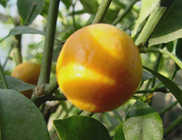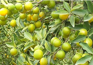 金柑是我國的傳統(tǒng)名果之一,在華南數(shù)省和長江流域均有分布。我省藍山縣栽培金柑已有140多年的歷史,面積達2000多畝,為我省重要的金柑生產(chǎn)基地。 藍山金柑,又名藍山金彈,為大果型良種,具有四大突出優(yōu)點:果實佳,用途廣,耐貯運,銷路好,樹形矮小,分枝密集;便于管理,適于密植;生長快,結(jié)果早,產(chǎn)量高;受凍后恢復(fù)生長結(jié)果快,經(jīng)濟損失小,因而久負盛名。 金柑果實。有特殊芳香,營養(yǎng)豐富,既可生食,又宜加工成金錢桔餅、金錢花或金錢罐頭等;食之有順氣潤肺、化痰止咳、促進消化、強壯身體之功。對治療氣管炎和哮喘病有良好效果,深受國內(nèi)外市場歡迎。