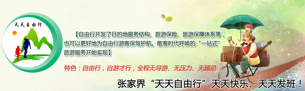 “天天自由行”是由(張家界市中國旅行社、張家界海外國際旅行社有限公司、張家界中世國際旅行社有限公司、張家界天馬國際旅行社有限公司、張家界中青旅國際旅行社有限公司、張家界市青年旅行社有限公司、張家界湘西青年國際旅行社有限公司、中國旅行社總張家界公司等35家旅行社)共同開發(fā)的張家界新型旅游產(chǎn)品,我們是根據(jù)當(dāng)前旅游的發(fā)展趨勢,客戶群體所需求而進(jìn)行;“天天自由行”產(chǎn)品自由度和豐富度將是客戶的主要訴求;同時,“天天自由行”也將主張服務(wù)能力的回歸;“天天自由行”張家界暢游無極限! 隨心而行,從這里開始! “天天自由行”帶給你不一樣的輕松和驚喜!